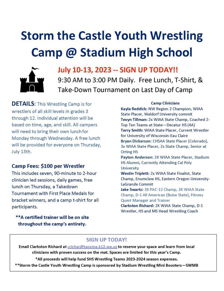 **Storm the Castle Youth Wrestling Camp is sponsored by Stadium Wrestling Mini Boosters-SWMB