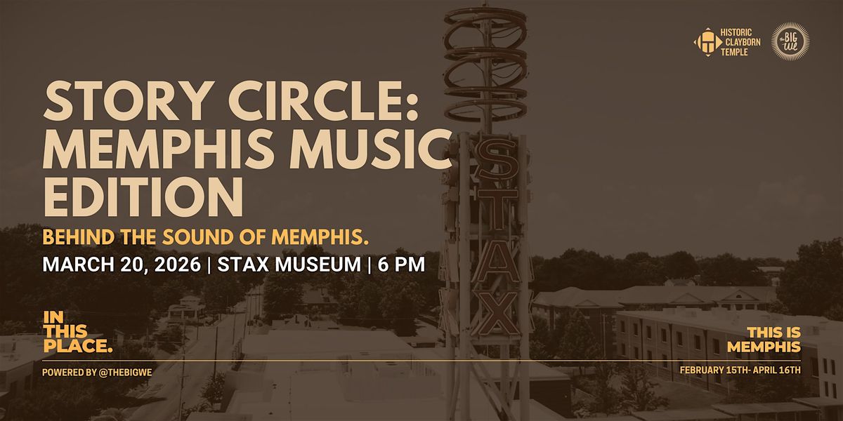 Story Circle: Memphis Music Edition is part of In This Place 2026: This is Memphis, a citywide season of culture, community, and capital rooted in Memphis history and powered by The Big We. Throughout the season, people gather to connect, share stories, and experience the city in ways that feel meaningful and fun. This night celebrates Memphis music as living culture and invites everyone in the room to be part of the story that continues to shape the city.