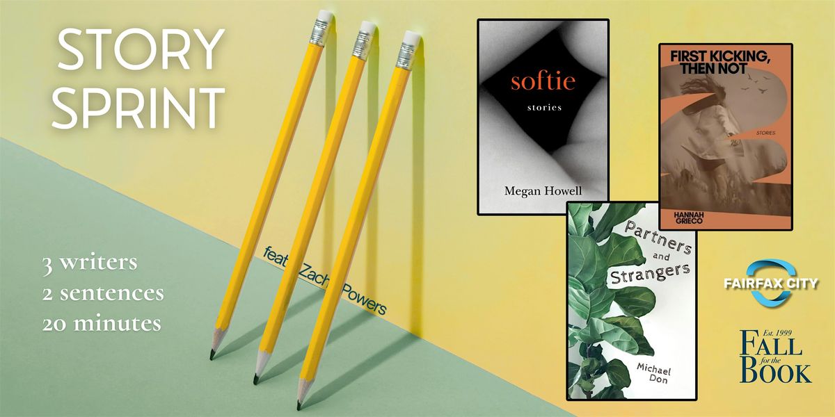 What do you get when you give three writers only two sentences and twenty minutes? A Story Sprint! Emcee and author Zach Powers will pull two audience-suggested sentences from a hat which will serve as the opening and closing lines for these impromptu tales. Featured sprinters Hannah Grieco, author of First Kicking, Then Not, Megan Howell, author of Softie: Stories, and Michael Don, author of Partners and Strangers will then write for their lives. This classic interactive race will include fun writing games for attendees during the Sprint, followed by a reading of the final stories.