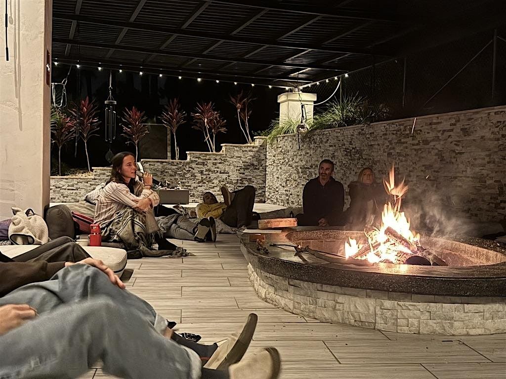 As night falls, your seat awaits beneath the stars on our safe and sacred outdoor patio, where the warmth of a crackling fire pit invites deep conversation, reflection, and connection.