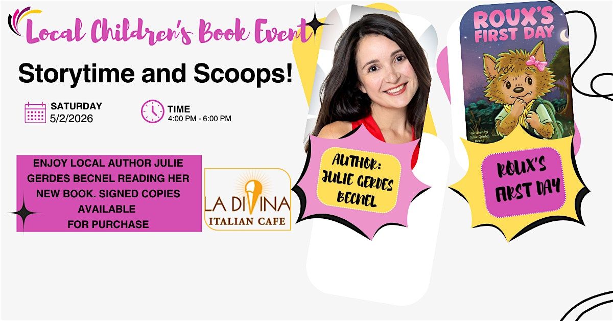 Join us for a delightful afternoon with local children’s author Julie Gerdes Becnel as she reads her charming new book "Roux’s First Day". This engaging event is perfect for children of all ages—and parents will enjoy it too! Treat yourself to a scoop of gelato while you listen, and don’t miss the chance to purchase a signed copy to take home.