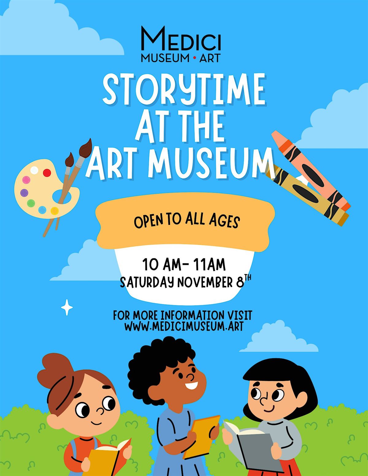 Join us for our Children’s Story Hour on November 8th 10AM-11AM! This interactive storytime is filled with fun songs, movement, and stories about how Art surrounds us! This is a free event open to infants, toddlers, preschoolers, and school ages with a parent or caregiver. Come enjoy the arts with us!