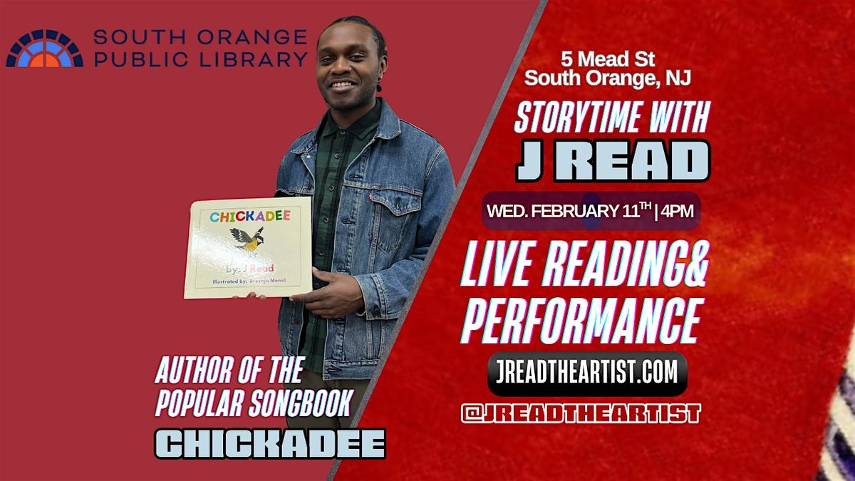 Musician and children's book author, J Read, stops by South Orange Public Library for a live reading and performance. As a professional violinist and singer/songwriter, J Read is touring the east coast, sharing his love for music, and his songbook, "Chickadee". It's a story of persistence about a baby bird who builds the strength and courage to learn to fly. Get your copy at https://www.jreadtheartist.com/chickadee , or pull up on Sunday Feb. 22, for your chance to meet the artist and see the live performance. FREE!!!