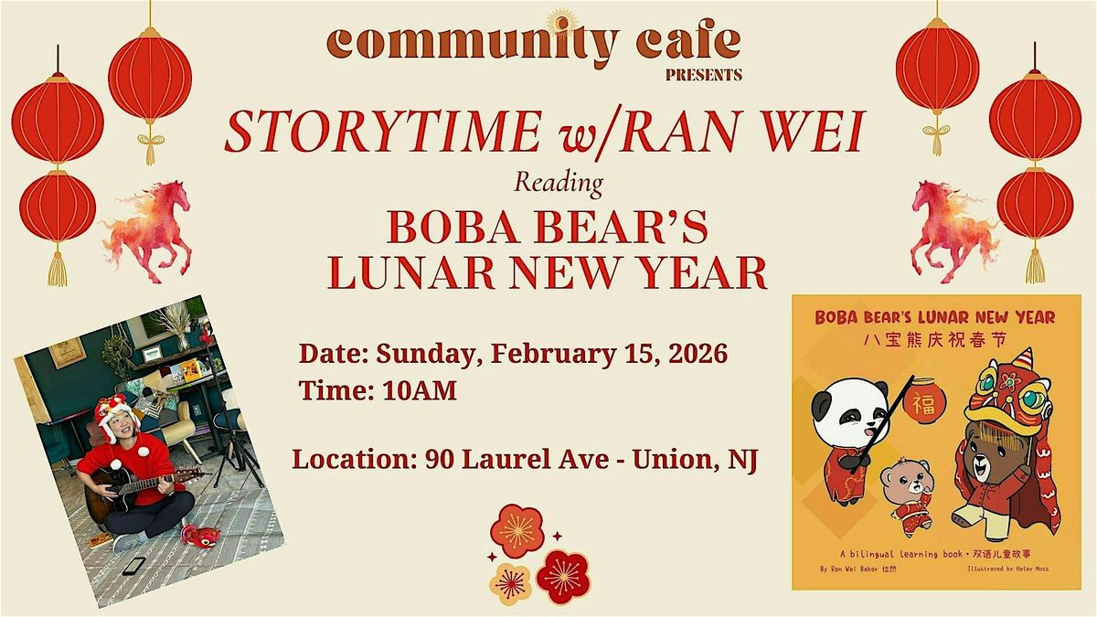 Join Community Cafe for a special storytime with author Ran Wei Baker, featuring a reading of Boba Bear’s Lunar New Year. Enjoy a cozy morning of storytelling, music, and festive cheer for little ones and their grown-ups.