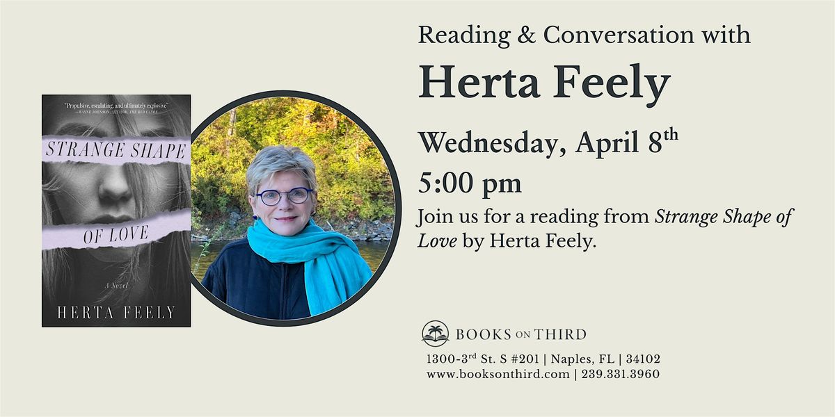 Join us at Books on Third for a special author reading with award winning author Herta Feely, who will read from her newest novel, The Strange Shape of Love.