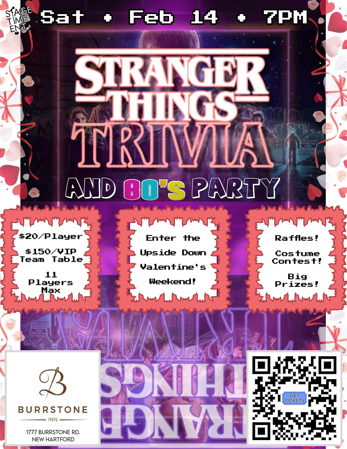 Stage Time Trivia presents Stranger Things Trivia Night and 80's Party at the Burrstone Inn Grand Ballroom on Saturday, February 14, 2026.