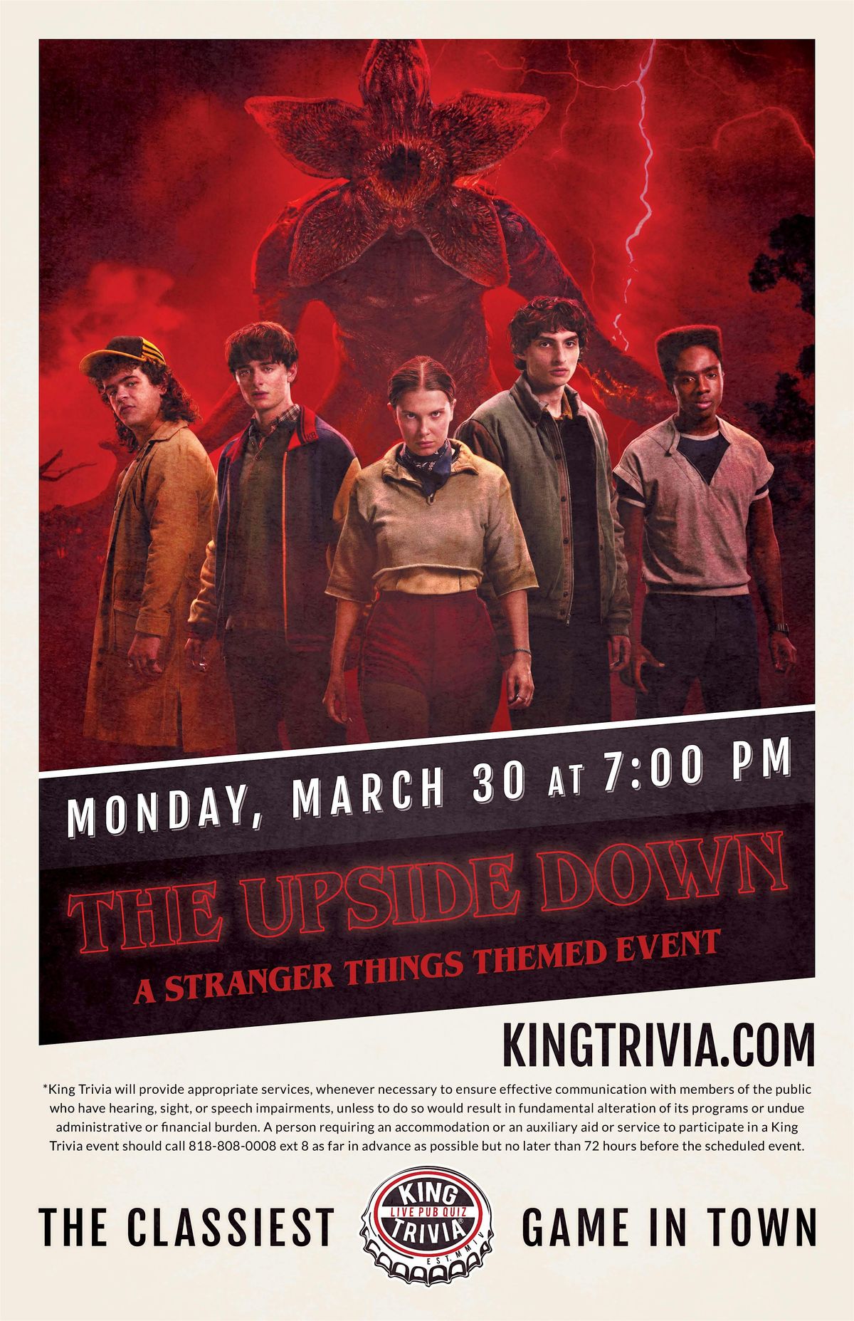 Get ready to test your knowledge on all things Stranger Things at Stella's Lounge! Join us for a fun-filled in-person trivia night where fans come together to challenge their brains and share some laughs. Whether you're a Hawkins expert or a casual fan, there's something for everyone. Bring your squad and compete for bragging rights in the ultimate Stranger Things showdown. Don't miss out on the fun – see you at Stella's!
