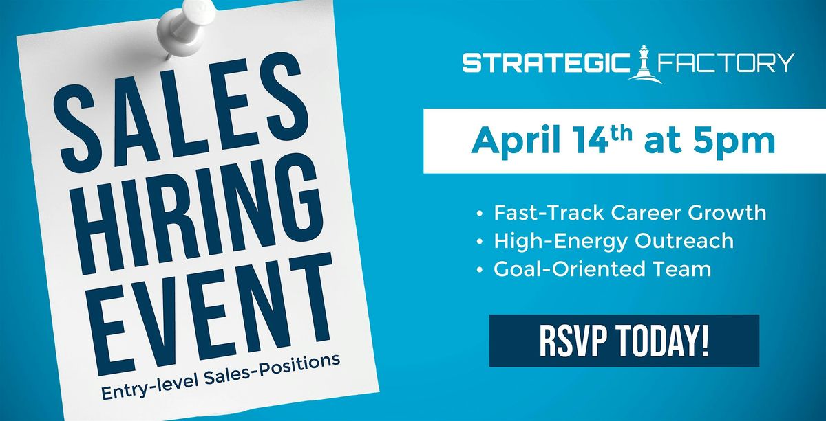 Join us at Strategic Factory for an on-site hiring event and apply for our entry-level Sales Development Representative (SDR) role. It's the perfect first step into a high-energy, results-driven career in sales, business development, or project management.