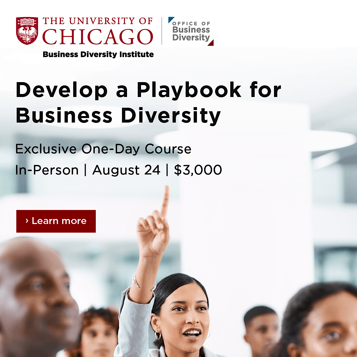 Our new course Strategies for Developing Diverse Professional Services Partnerships is offered by The University of Chicago’s Office of Business Diversity and presented by its Business Diversity Institute. This one-day course delivers practical solutions to build impactful and sustainable business and supplier diversity programs, focusing on strategies to expand professional services with minority and women-owned businesses. Working with minority and women-owned businesses grants your organization the opportunity to access a richer pool of talent that is overflowing with new ways of thinking, helping drive innovation, creativity, and growth, according to research on diversity within the workplace.