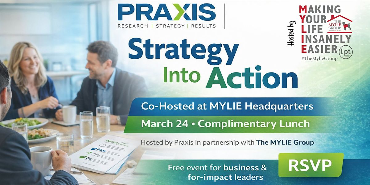 Praxis Consulting is partnering with The MYLIE Group | lpt realty Brokerage on a focused lunch session for business leaders and for-impact leaders who are ready to move from strategic intent to measurable action.