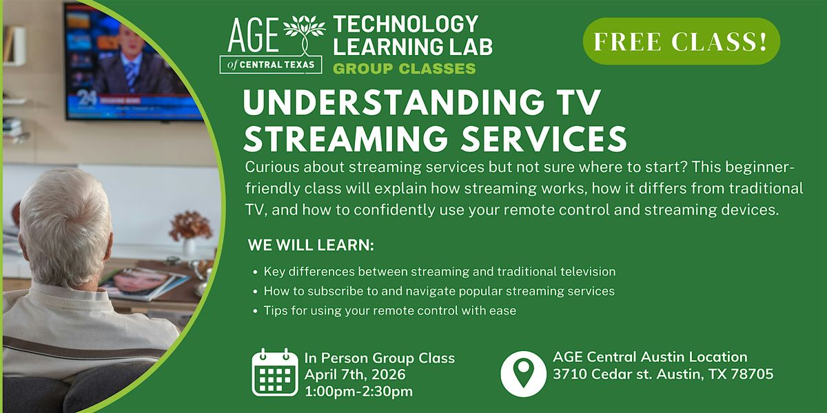 Join us in person for a fun and interactive session all about streaming media! Whether you're new to the world of online videos, music, or live broadcasts, we’ll break down the basics and show you how to both use and think about this new media platform. As a bonus, we will also talk about how to understand remote controls! Bring your questions and curiosity—we’re here to make streaming simple and enjoyable for everyone!
