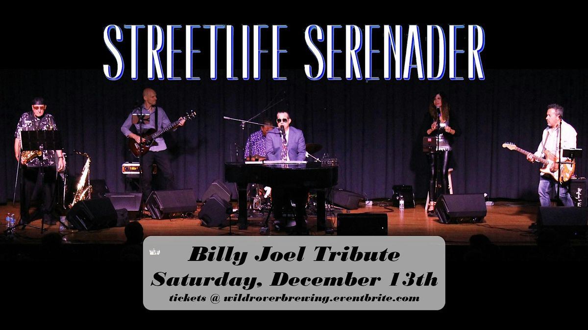 Welcome to the Streetlife Serenader - Billy Joel Tribute event! Get ready to experience the magic of Billy Joel's music live at Wild Rover Brewing Company. Join us on December 13, 2025 at 9:00 PM for a night filled with classic hits and unforgettable melodies.