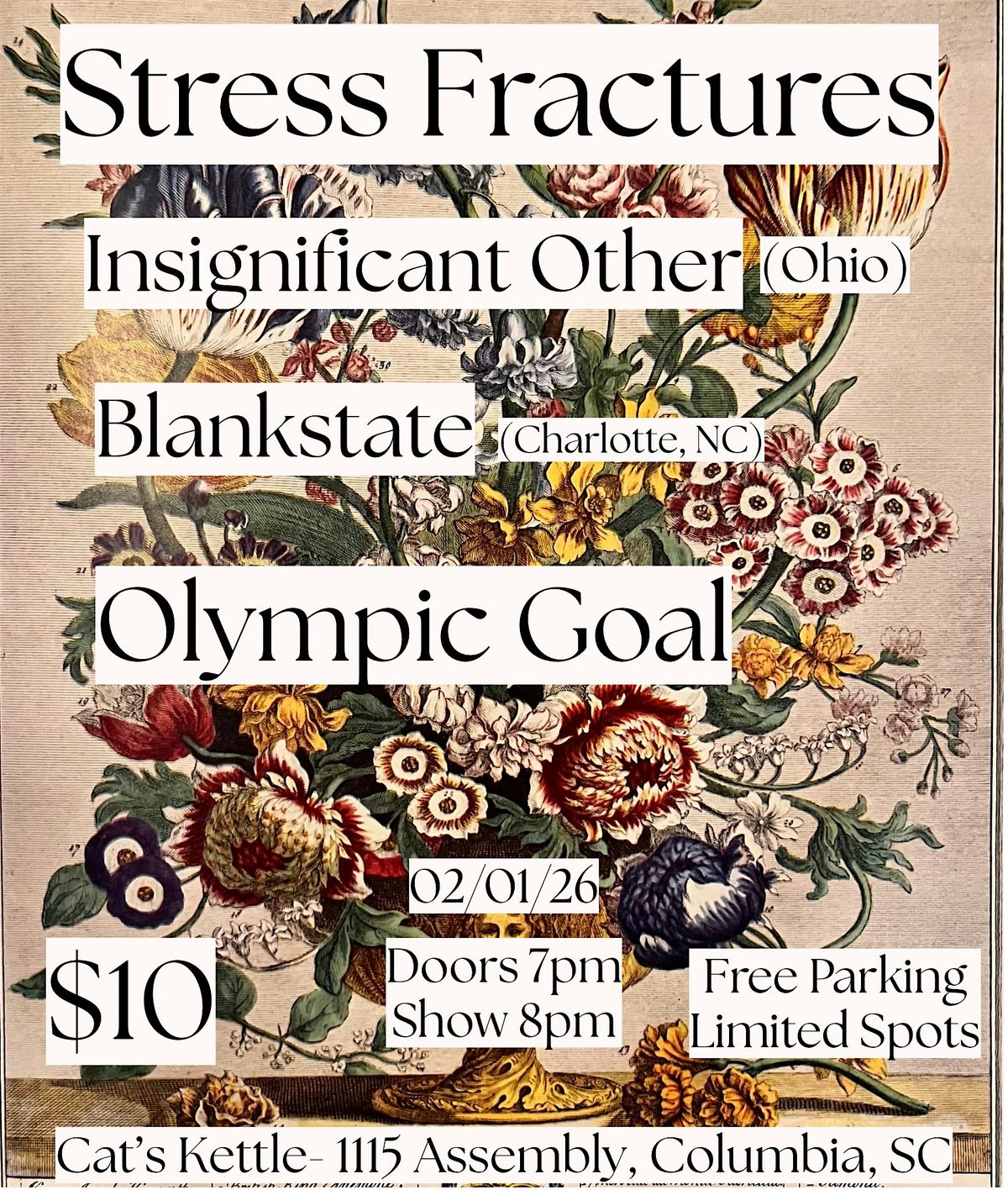 Live Music- 02/01/26- Stress Fractures, Insignificant Other, Blankstate, Olympic Goal- Doors 7pm Show 8pm- $10- Emo, Punk, Alternative