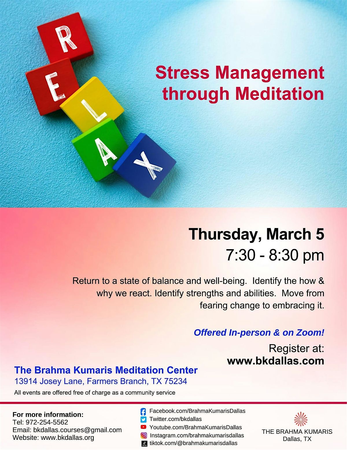 Brahma Kumaris Meditation Center | Farmers Branch, TX