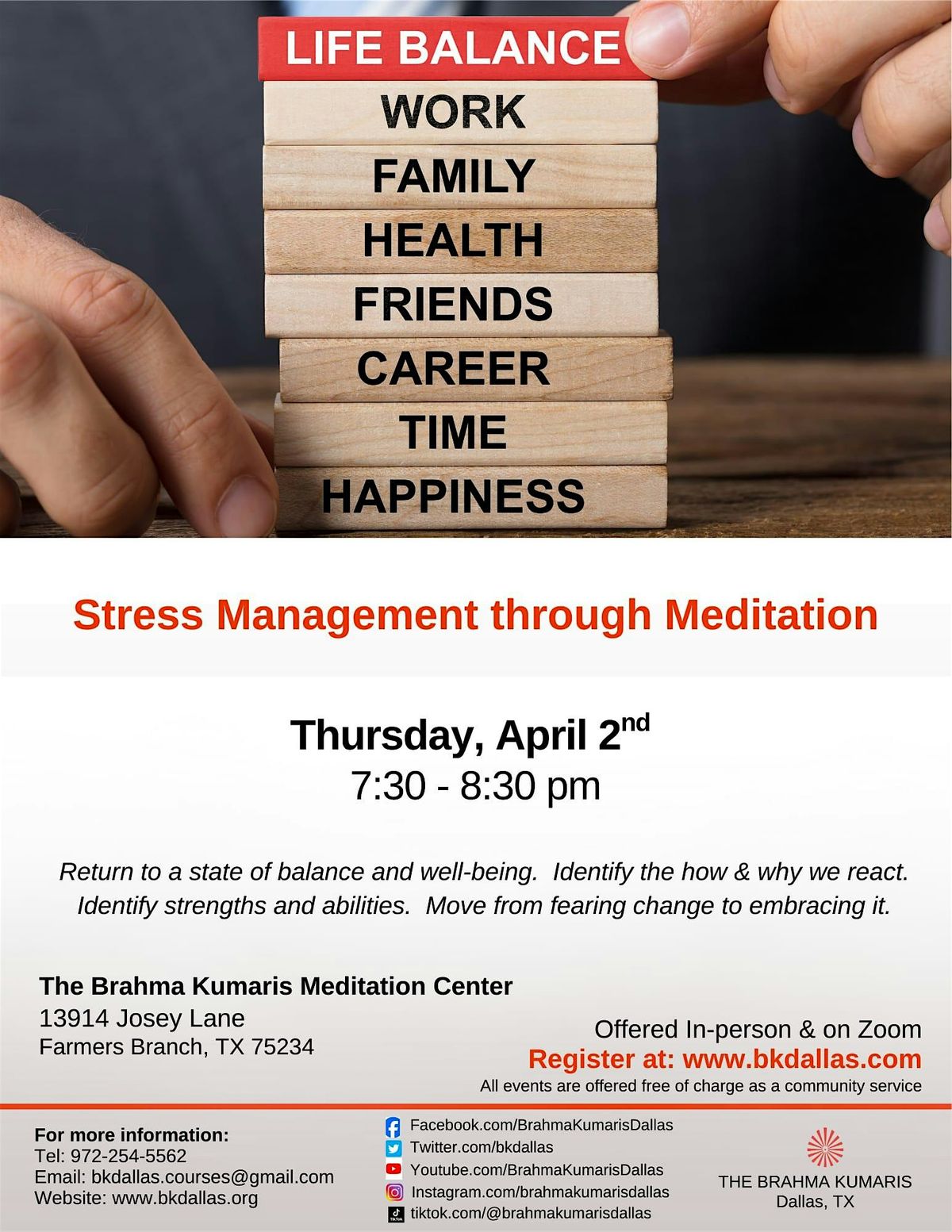 Stress Management through Meditation - In Person and Online