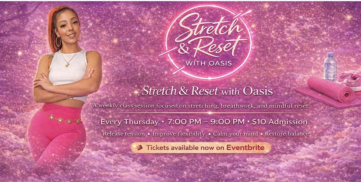 Life can feel nonstop — between responsibilities, work, family, and mental load, it’s easy to forget to slow down and take care of yourself. Stretch & Reset with Oasis was created as a safe, welcoming space for you to pause, breathe, and reconnect with your body and mind.