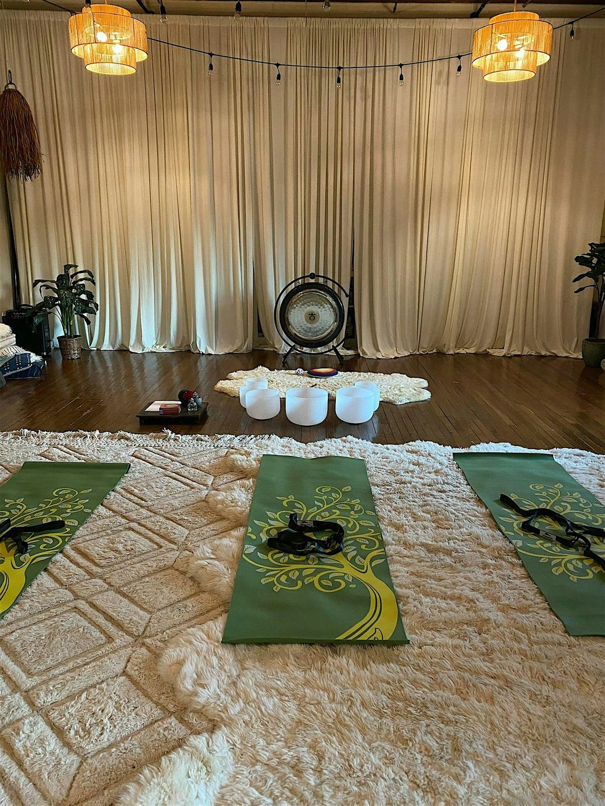 The second half is deep relaxation with gong and singing bowls. The sound frequencies help shift the nervous system out of stress mode and into recovery mode, allowing the body to release tension and reset.