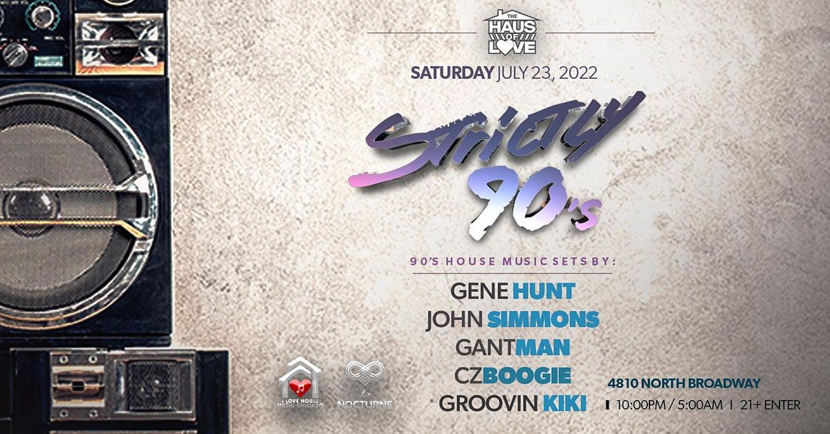 The Haus of Love of Edition of Strictly 90's: We celebrate a golden era of music that defined dance music for what it is today! Special 90's house music sets by Gene Hunt, John Simmons, Gantman, Czboogie and Groovin Kiki. 10p-5am. A limited amount of discounted tickets are available, get them while they last.