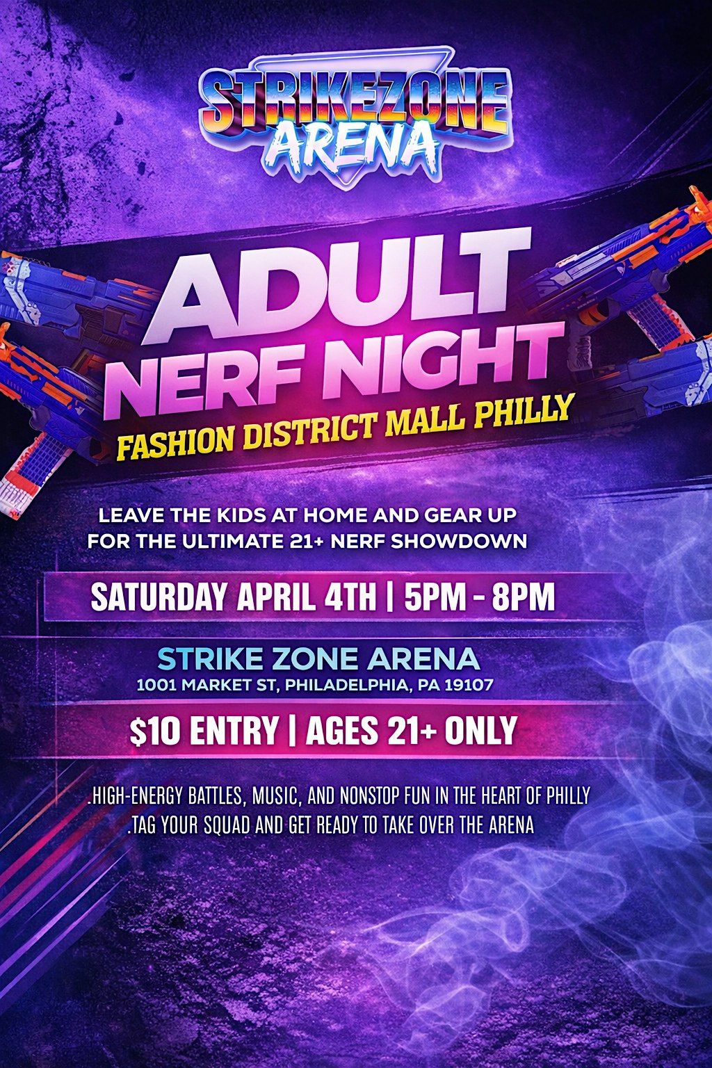Leave the kids at home and get ready for an epic 21+ Nerf battle at Strike Zone Arena – Fashion District Philadelphia