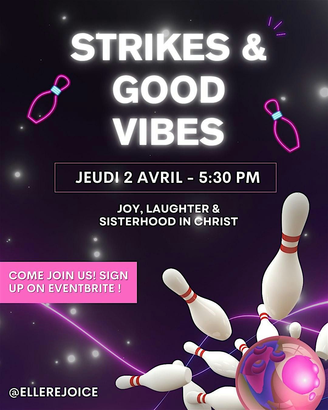 Viens passer une soirée de quilles fun, pleine de joie et de bonnes vibes 💕 Un beau moment pour se connecter et s’amuser ensemble en tant que femmes de foi 🤍