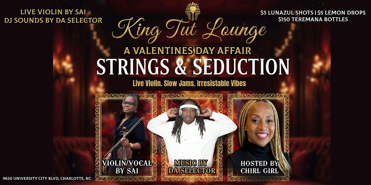This Valentine’s Day, experience music in a way you haven’t before at Strings & Seduction—a curated evening celebrating live artistry, soulful sound, and elevated vibes at King Tut Lounge. Designed for couples and singles alike, this is a night where great music and great energy take center stage.