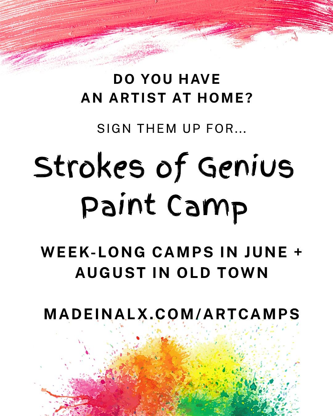 Strokes of Genius Paint Camp - June 29-July 2 (afternoons, ages 10-13)
