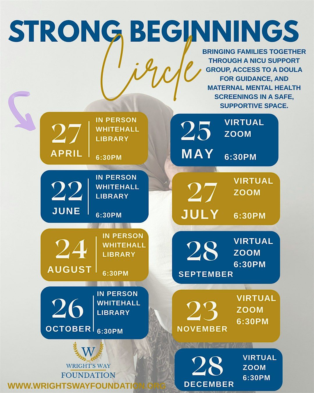 At Wright’s Way Foundation, we believe no family should navigate the NICU or postpartum journey alone. The Strong Beginnings Circle is designed to bring families together in a safe, supportive environment while connecting them to meaningful resources and care.