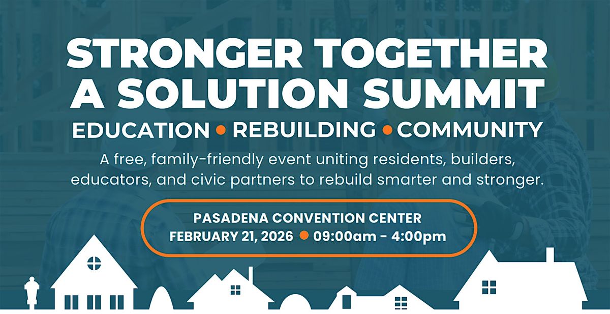 From 9 AM to 4 PM at the Pasadena Convention Center, residents, neighbors, local leaders, builders, nonprofits, and recovery partners will gather for a community-centered day focused on healing, learning, and rebuilding. This gathering is about people first—creating space to share experiences, access trusted resources, and reconnect with one another as we continue to rebuild our homes and our lives.