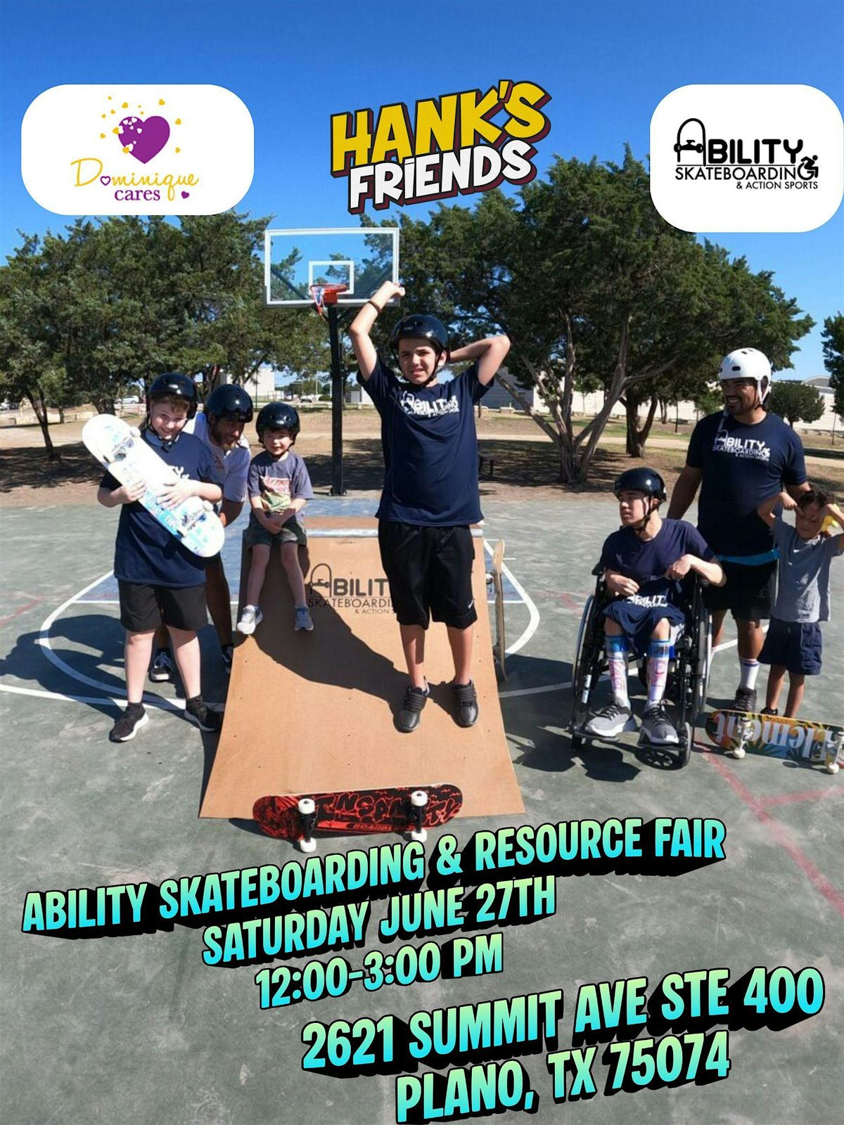 Join Hank’s Friends and Ability Skateboarding , in partnership with Dominique Cares, for a free, family-friendly Ability Skateboarding & Resource Fair open to all ages and abilities. This inclusive event creates a welcoming space where kids, teens, and adults can learn to skateboard, build confidence, and connect with others in a supportive environment. Experienced instructors will be on hand to guide participants of all skill levels, including those with physical, developmental, or sensory needs.