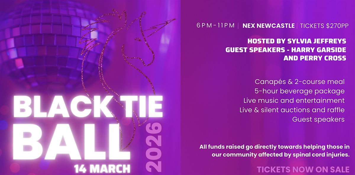 Join us for an unforgettable evening at the Stronger Together for Spinal Black Tie Event! We are thrilled to invite you once again to NEX Newcastle on Saturday, 14 March 2026, for a night dedicated to raising awareness and funds for those affected by Spinal Cord Injury (SCI).