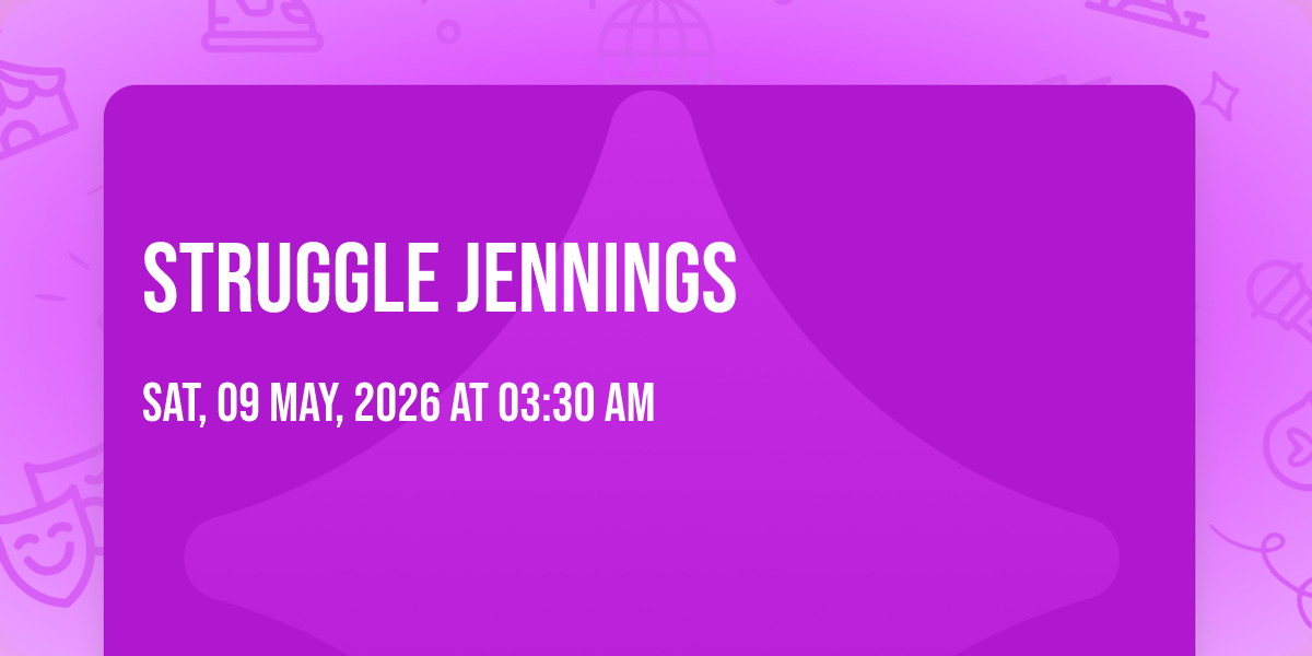 📍 Location: 39.7144, -121.809✨ Enter a world of endless possibilities at Struggle Jennings, where every moment tells a story! 🏛️ The stunning Tackle Box Bar & Grill in vibrant Chico, CA transforms into a realm of wonder on May 9th, 2026 at 03:30 AM. 🌟 They have crafted an experience that goes beyond the ordinary, combining elements of surprise, delight, and pure entertainment. Every detail has been thoughtfully considered to ensure your journey with us is nothing short of extraordinary. 🎯 Join fellow adventure seekers and memory makers in this celebration of imagination and innovation. 🎊 Reserve your spot today and be part of something truly special!