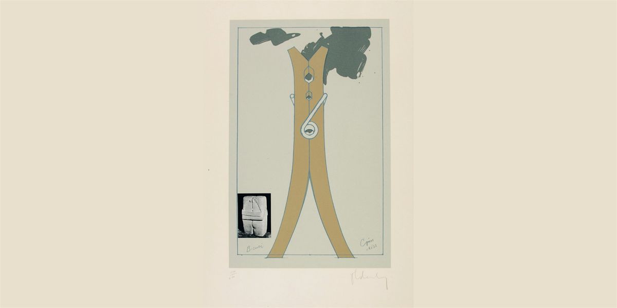 Image: Claes Oldenburg (American, b. Sweden, 1929 – 2022), Clothespin Kiss,1981, Color lithograph, 21 1/2 x 13 3/4 in. image, Terese and Alvin S. Lane Collection, 2012.54.44.12