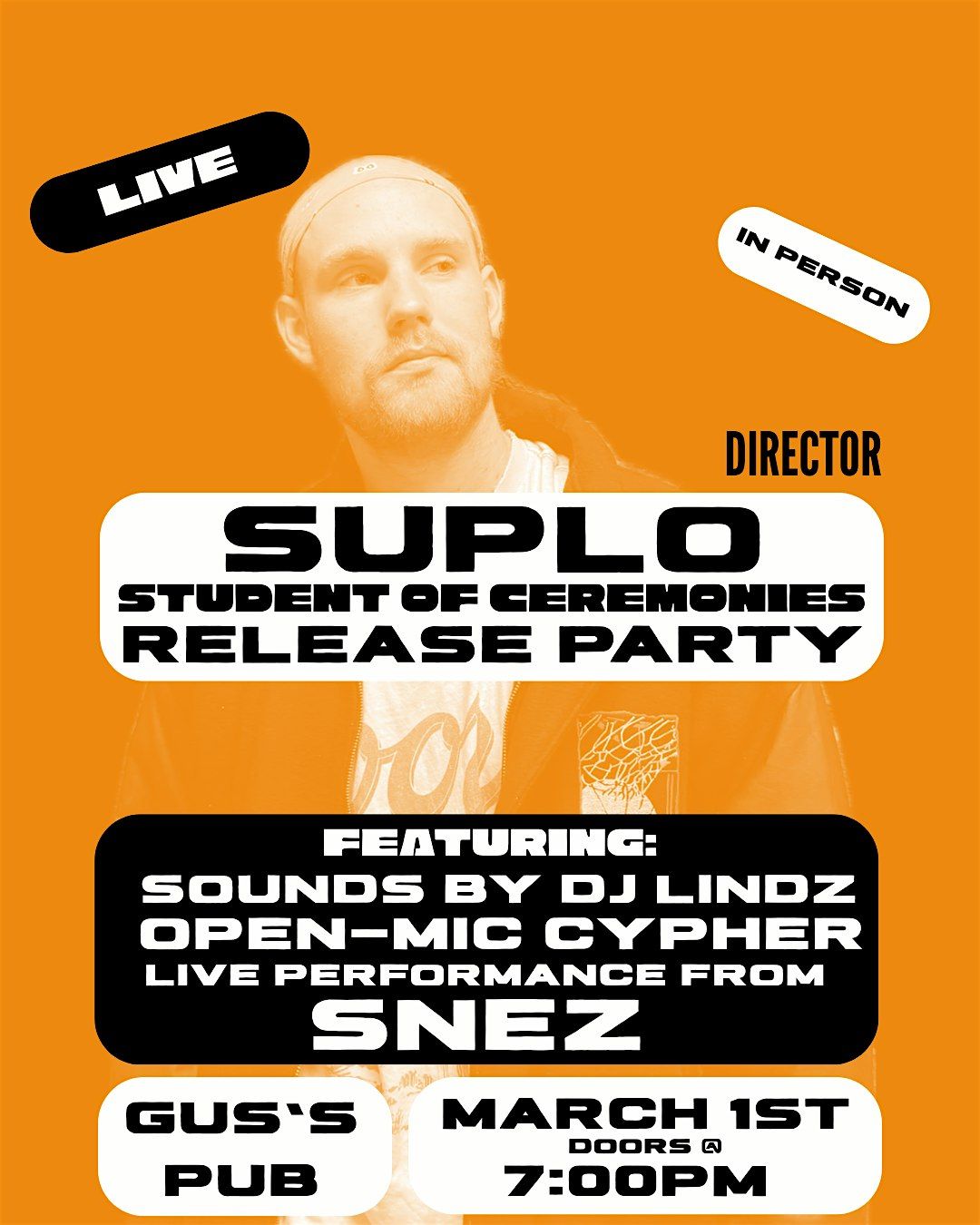 The STUDENT OF CEREMONIES Release Party celebrates SupLoβs debut mixtape and first solo live show. With DJ Lindz on the decks, a featured performance from Snez, and an open-mic cypher welcoming all MCs to freestyle or perform a verse, come hear the whole mixtape early and LIVE. A guaranteed night of pure hip-hop in Halifax. Doors open at 8:00PM. 19+ only