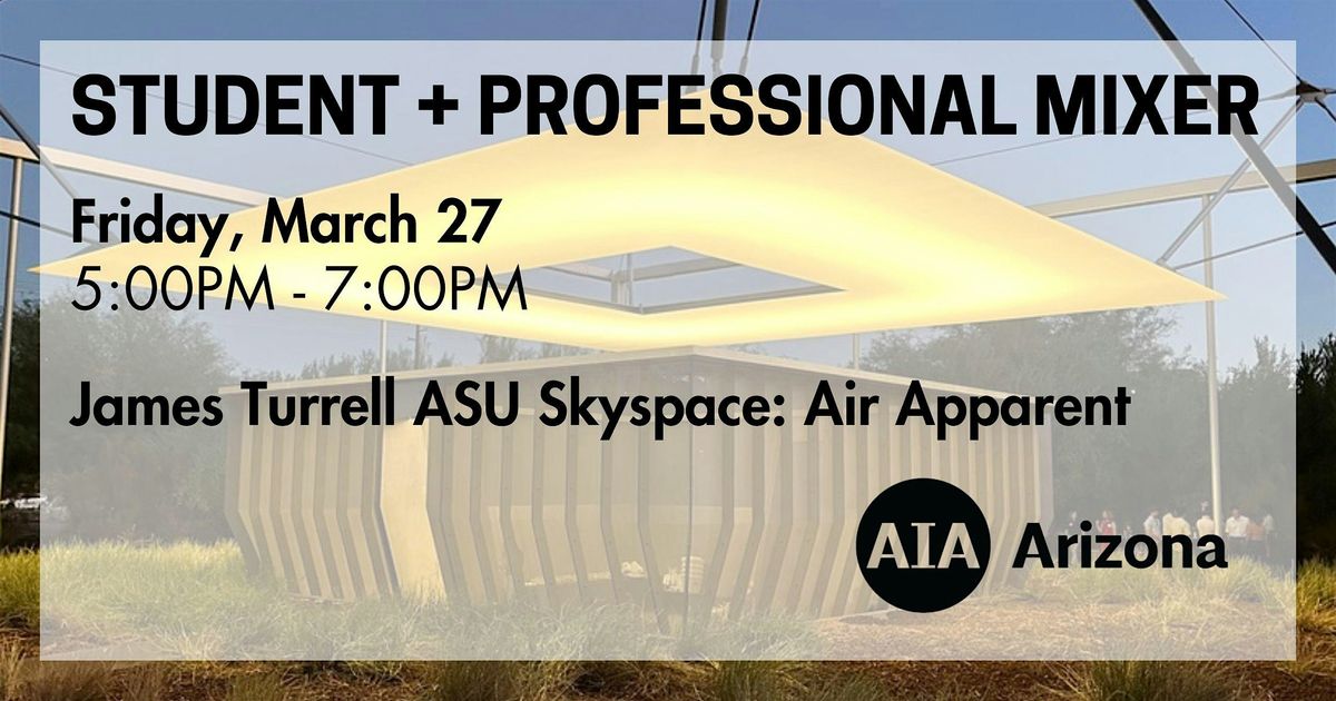 AIA Arizona is pleased to continue to partner with all Arizona-based architecture schools for this informal mixer at James Turrell ASU Skyspace: Air Apparent. All AIA members and architecture students are welcome to share in this networking opportunity.