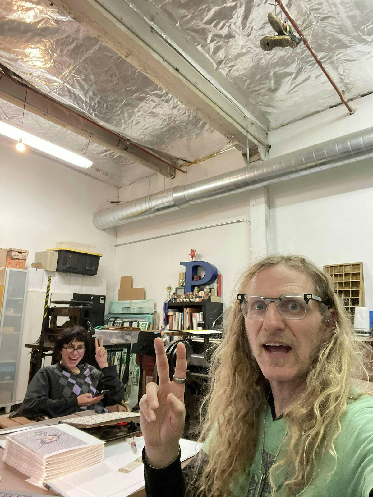 Peter has a diverse and art-centered publishing and visual communication practice, ranging from publishing books and zines of his own authorship that examine humorous and slyly political interventions in space that unfold over time, publishing the work of other artists, and bringing and designing work for clients of Quimby’s Ink, a publishing and print services division of Quimby’s Bookstore.