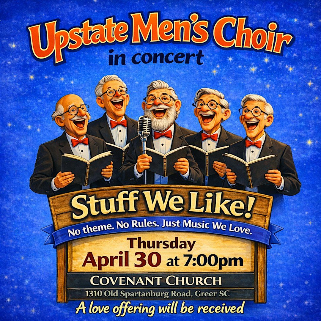 Favorite songs of the Upstate Men's choir . From Broadway show tunes to rousing fun songs all in four part men's harmony.