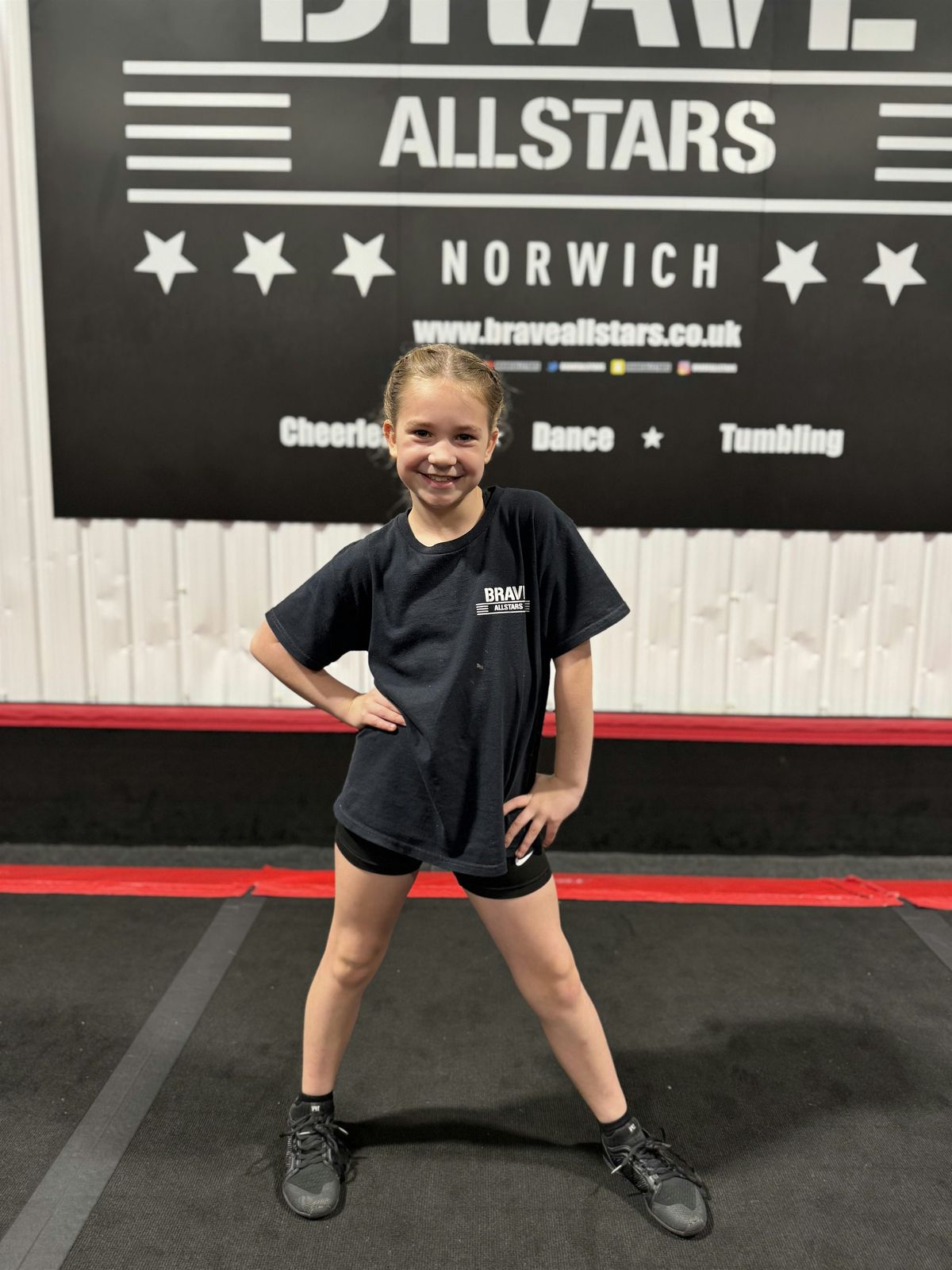 We ask that you bring water in a named bottle, all jewellery is removed or taped up, hair is out of the face in a style that will last the duration of the session, you wear comfortable, sporting clothes along with bare feet or cheer shoes. Brave apparel can be bought from our on site pro shop, but neither the apparel or cheer shoes are compulsory. Our 'Cheer Shoe Recommendation' document can be found on the homepage of our website. We recommend outdoor shoes that can be slipped on and off rather than lace up shoes to avoid congestion. Please note, apparel from other UK Cheerleading programmes is not permitted to be worn. Please be in Brave apparel or generic sports clothing.