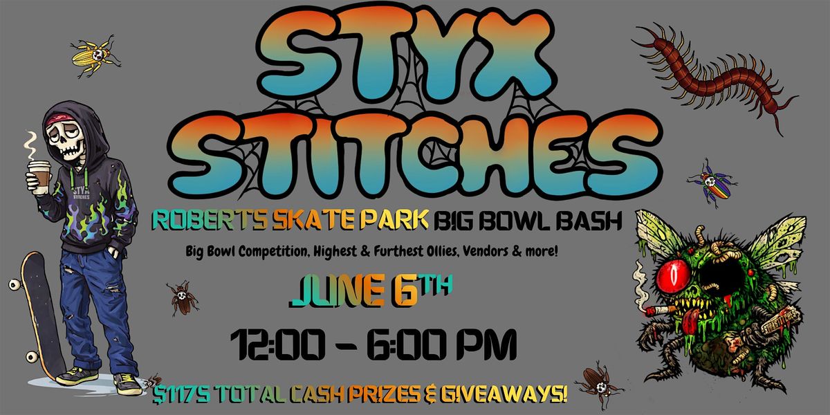 Get ready to dive into the ultimate in-person bowl party at the Styx Stitches Big Bowl Bash! Whether you're a pro or just love skateboarding/bmx etc. this event is all about competition, skateboarding & good company. Join us for a laid-back day filled with creativity & community. Don't miss out on the chance to compete, meet local vendors & witness great skating form the locals! Let’s make some memories together!