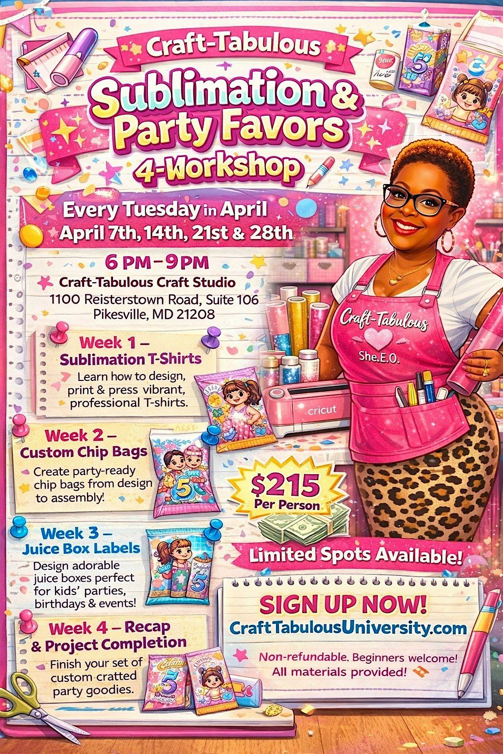 ✨ Craft-Tabulous Sublimation & Party Favors 4-Week Workshop ✨