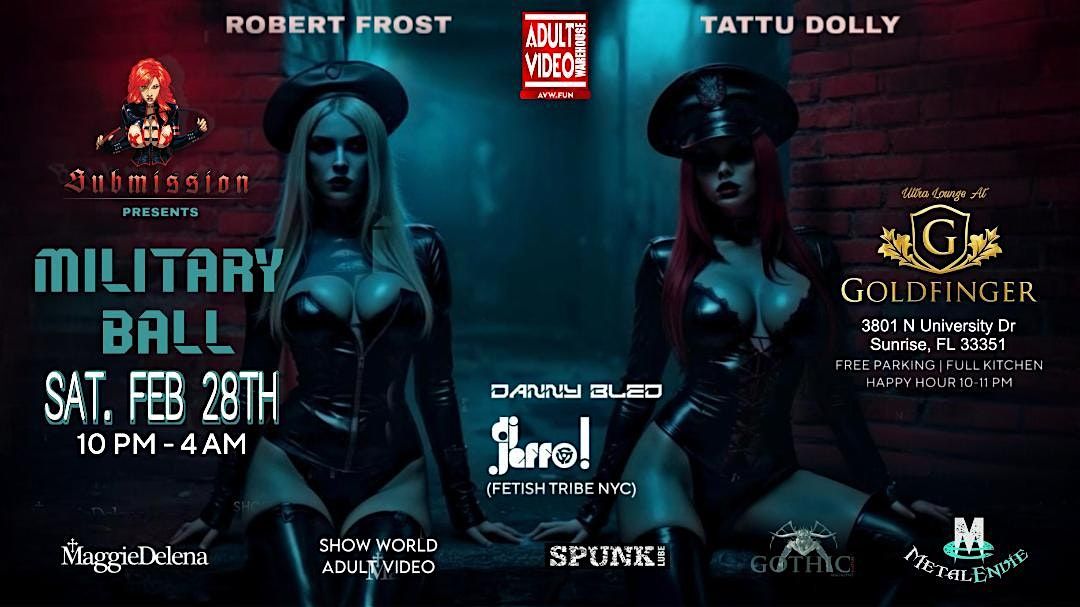 Submission Events Presents " MILITARY BALL" on Saturday February 28th at The Ultra lounge located at Goldfinger Gentlemen's Club. This is Our Annual Military Ball Theme Party and a real fun event to dress up.