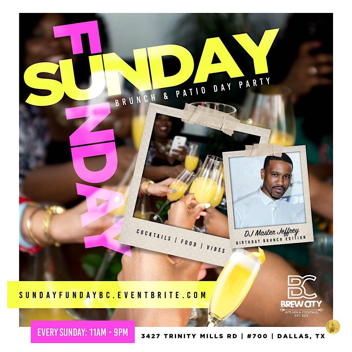 Welcome to the HOTTEST Sunday Funday Brunch & Patio Day Party in Dallas,TX. We know for sure that today's urban professional likes three things: Good Food , Good Drinks, and Good Music! So come out to Brew City Kitchen And Cocktails Every Sunday from 11am to 9pm where we're serving a heaping helping of all three at SUNDAY FUNDAY Brunch & Patio Day Party!