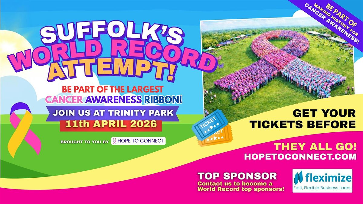Mark your calendars β Saturday 11th April 2026 β because Suffolk is about to make HISTORY! Together, weβre attempting to break the World Record for the largest Human Cancer Awareness Ribbonβ¦ and we need YOU to be part of it!