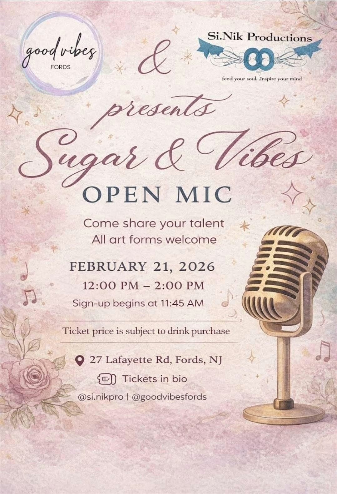 Sugar & Vibes All Art Monthly Open Mic celebrates creativity and connection while supporting access to healthy food options for everyone.