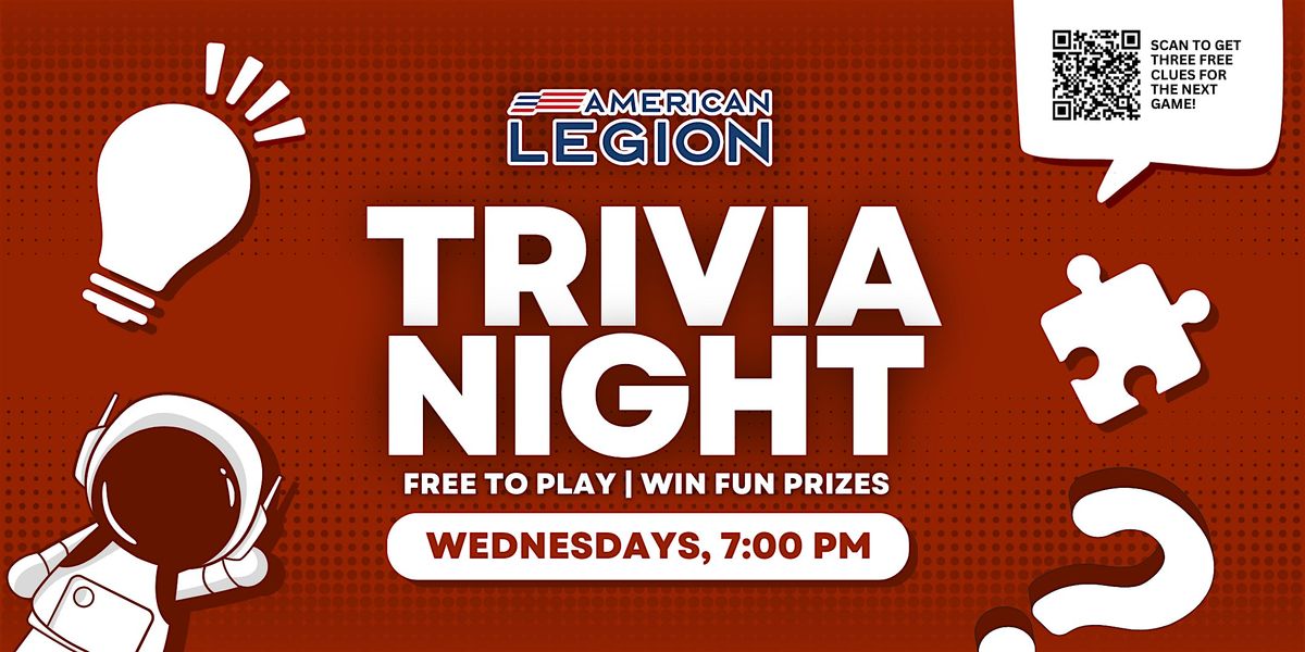 Join us for free live trivia every Wednesday at 7pm at American Legion Post 1271, located at 65 1st St, Sugar Grove, IL 60554! Free to play, and top teams win fun prizes!