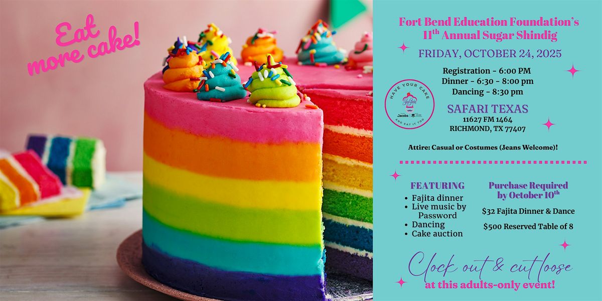Enjoy a casual evening of fun and frolic, including a fajita dinner, cake auction, dancing and live music while raising funds for the Fort Bend ISD Education Foundation Grants to Teachers and Schools. This is camaraderie at its finest as Fort Bend ISD staff and community members vie for the best cakes made by local bakers. Have your cake and eat it too at this shindig!