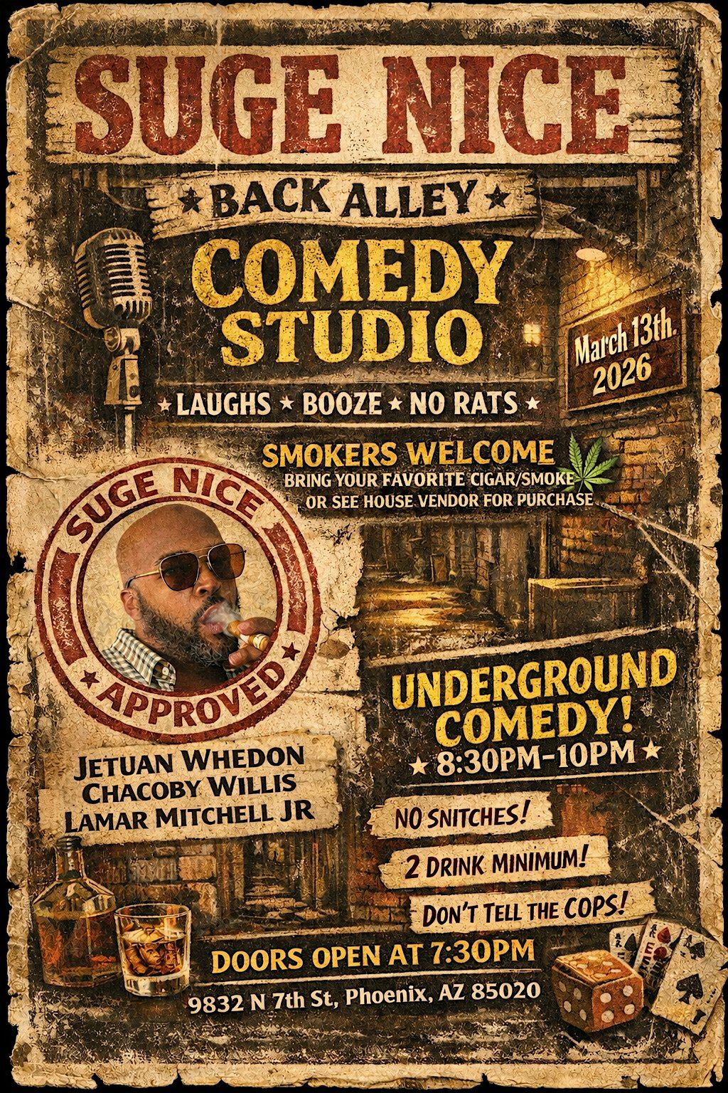 Come early, bring your favorite smoke, grab a drink, and get ready to enjoy a night filled with laughter and good vibes. See you there!