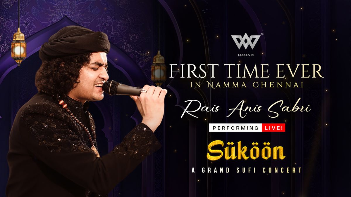 Sukoon is an immersive Sufi musical experience celebrating love, peace, and spirituality through music.This grand evening features the internationally acclaimed Sufi vocalist Rais Anis Sabri, known for his soul-stirring performances and timeless renditions rooted in Sufi tradition.Set in the iconic Sir Mutha Venkatasubba Rao Concert Hall, Sukoon promises an intimate yet powerful live concert experience with refined seating, rich acoustics, and a deeply tranquil atmosphere.Join us for a memorable night where music transcends language and touches the soul.An evening of soulful melodies, poetic devotion, and timeless Sufi music.