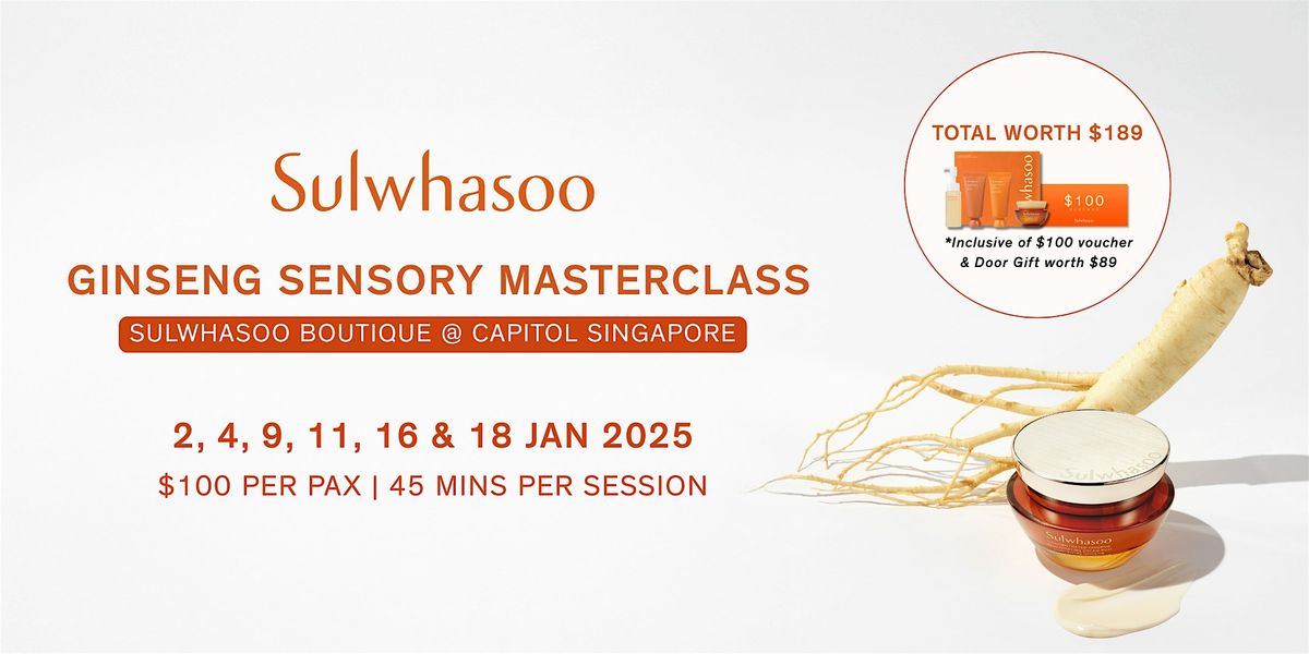 Register for the Sulwhasoo Ginseng Sensory Masterclass and indulge in an exclusive sensory and hands-on experience! From crafting your personalised ginseng-infused scent pouch to curating a relaxing bath bag, each session is thoughtfully designed to awaken your senses and immerse you in the brand’s holistic philosophy. Every participant will also enjoy a door gift (worth $89) and a $100 Sulwhasoo voucher, fully redeemable on our products.