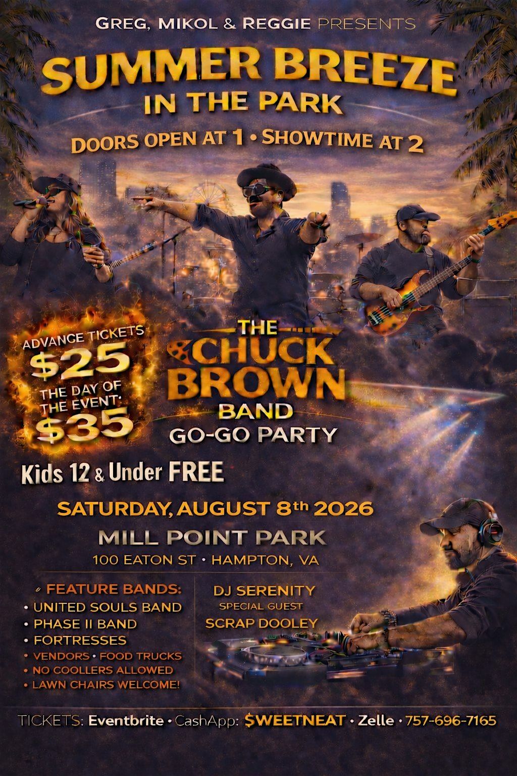 Concert that features The Chuck Brown Band with the GoGo sound, United Souls Band,Raggae, Phase II Band R & B and special guest Fortresses. Food trucks and vendors present. Big Party