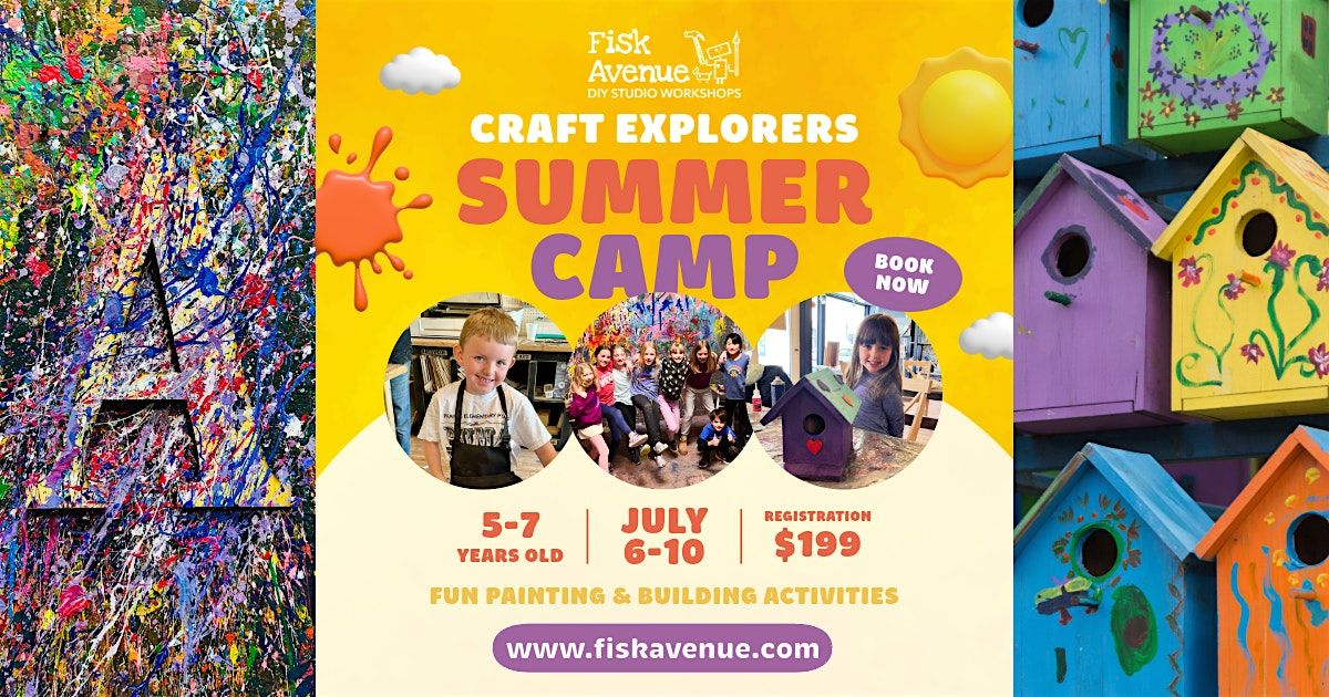 At Fisk Avenue’s Craft Explorers day camp, young makers ages 5–7 dive into a week of hands-on creativity in our welcoming DIY studio. Guided by our experienced Workshop Leader, Madilyn Duffy, campers will experiment with a variety of materials and techniques designed just for their age group. Each day, kids will create something new—custom splatter t-shirts, vibrant fluid art on canvas, hand-built birdhouses, painted step stools, and their own free-painted wooden letter. Our approach encourages creative confidence, artistic exploration, and plenty of opportunities for self-expression, all in a fun, supportive environment where every child can shine.